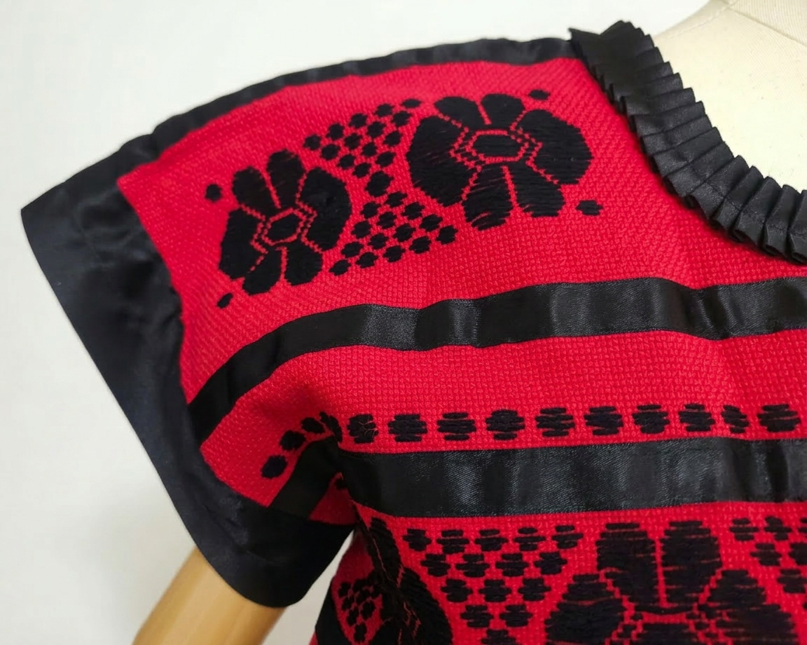 Huipil Rojo Bordado Oaxaca